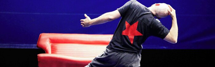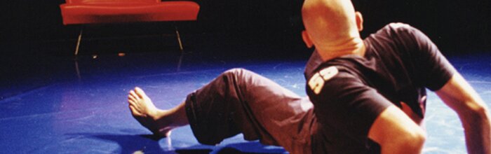 The performance live* owes its origin to the collaboration between the choreographer and dancer Francesco Scavetta, the composer Luigi Ceccarelli and the visual artist Tone Myskja. They collaborated on creating the piece within the project “New works for the Biennale of Venice – Department of dance and music 2001”. Commissioned by Carolyn Carlson, director, at that time, of the Dance department at La Biennale di Venezia, the performance had as a starting point the theme: “Virtual time, real time”.